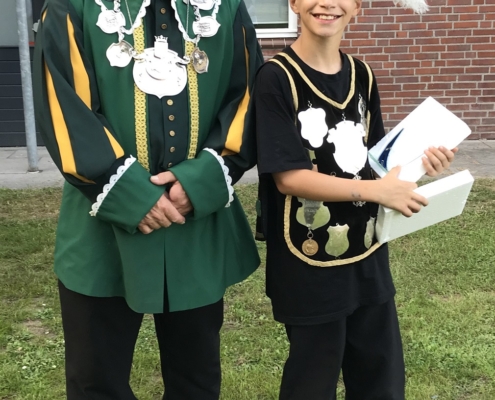 Er was zoals gezegd ook een vogel voor de jeugd. Ook hier ging de strijd tussen Groeningen en Oeffelt. Uiteindelijk werd Ilan Velthuis van het gilde van Groeningen 8-gilden jeugdkoning! Tijdens de huldiging werd bij Theo de traditionele ketting omgehangen met de acht schildjes waarop de patroonheiligen van de acht gilden afgebeeld staan. Ilan ontving een mooie bokaal. Over 2 jaar vindt er weer een nieuwe wedstrijd plaats en mag Theo de ketting weer inleveren.