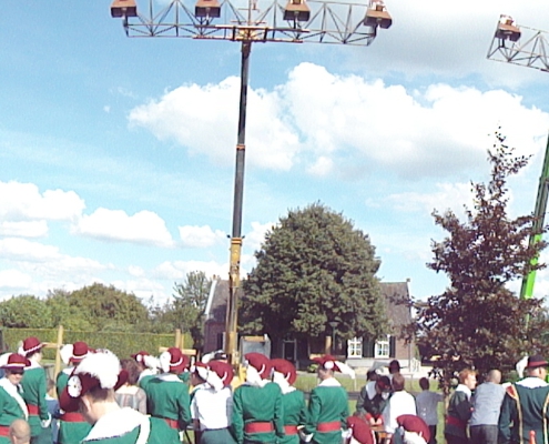 Afgelopen zondag was het weer tijd voor het tweejaarlijkse gemeentekoningschieten voor alle acht gilden uit de gemeente Boxmeer. Tijdens deze wedstrijd strijden alle gilden uit de gemeente Boxmeer (Groeningen, Boxmeer, Holthees, Overloon, Sambeek, Maashees, Oeffelt en Beugen) om de eer de gemeentekoning in de gelederen te krijgen. Ieder gilde moet proberen in zo min mogelijk schoten een houten klos naar beneden te schieten en de laatste schutter van het winnende gilde mag zich vervolgens voor de komende twee jaar gemeentekoning noemen. In 2004 viel Marco Gerrits van ons gilde deze eer ten deel en in 2006 wisten we deze titel te prolongeren toen Marc Peters de klos naar beneden schoot. Nadat we in 2008 de titel waren verloren aan het gilde van Beugen, hoopte iedereen dat de gemeentekoningsketting dit jaar weer voor twee jaar voor Groeningen zou zijn.
