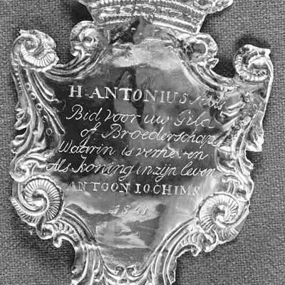 H ANTONIUS Abt Bid voor uw Gild of Broederschap Waarin is verheven Als Koning in zijn leven ANTOON JOCHIMS 1841