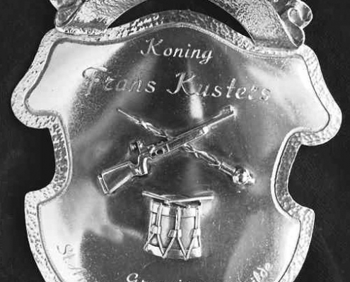 Opgelegd: tamboermaitrestok, geweer en gildetrom