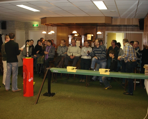 Gisteravond vond in het clubgebouw “de Lêmse Kuul” de slotavond met tevens prijsuitreiking plaats van het clubkampioenschap kruisboogschieten 2005-2006, die dit jaar alweer voor de tweede maal is verschoten. De prijzen werden uitgereikt door de wedstrijdjury, welke bestond uit Robby Willems, Marco Gerrits en Carsten Willems. Gedurende een zevental wedstrijdavonden in december en januari hebben 36 personen deelgenomen aan het clubkampioenschap kruisboogschieten. Tijdens iedere wedstrijdavond kreeg elke deelnemer de gelegenheid om series te schieten van 22 schoten (2 proefschoten & 20 schoten die meetellen voor het algemeen klassement). Om aan het eindklassement mee te doen diende men minimaal drie maal een dergelijke volledige serie schoten te hebben gelost. Van de 36 deelnemers zijn er helaas 9 niet in geslaagd 3 volledige series te schieten op de 7 schietdagen.