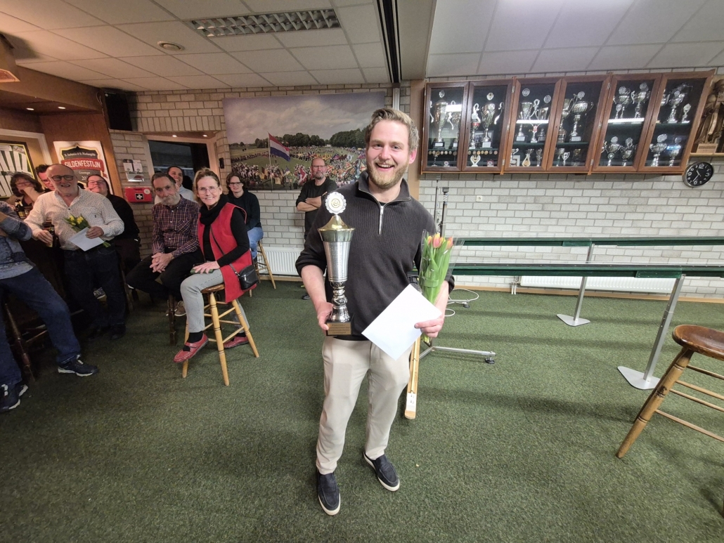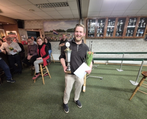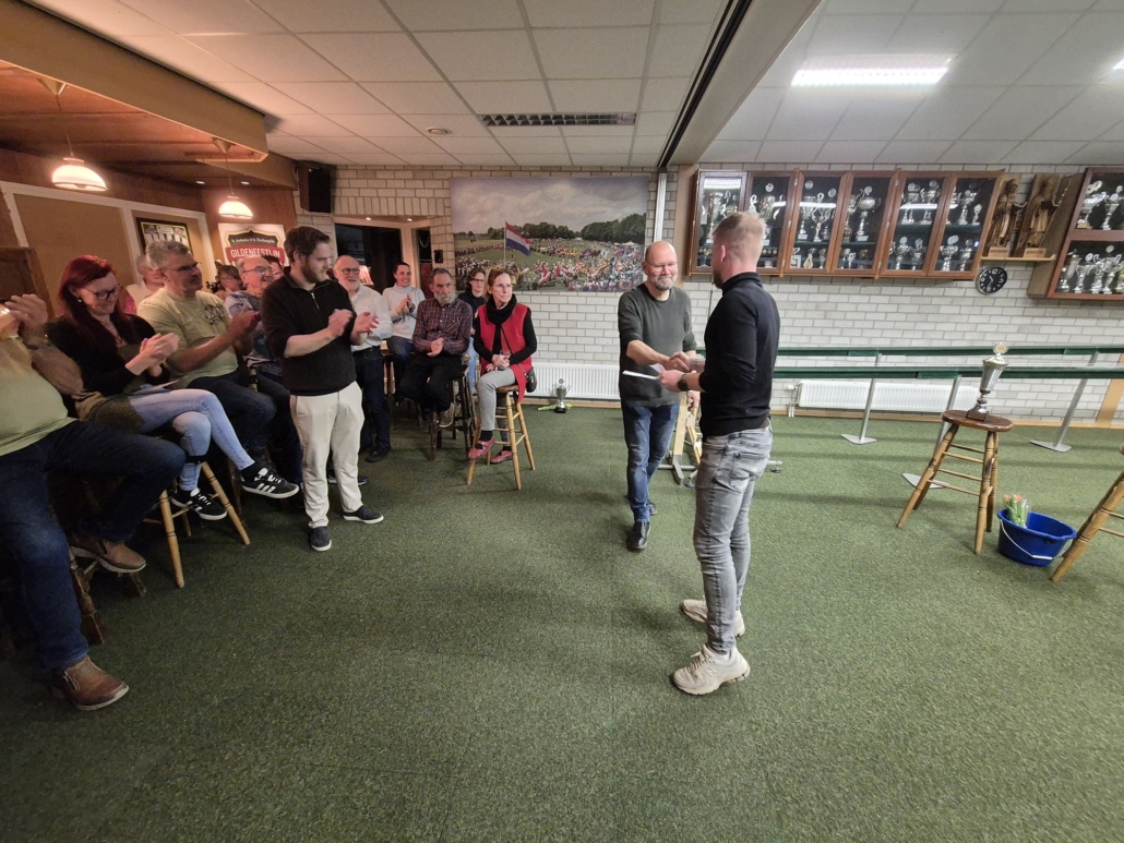 De hoofdman maakte per klasse de scores van de prijswinnaars bekend. Van de winnaars uit elke niet opgelegd klasse (A en B) wint de schutter met de hoogste gemiddelde score een geldprijs, de wisselbeker en uiteraard de titel van clubkampioen. De schutter met de hoogste gemiddelde score uit elke niet opgelegd klasse (Opgelegd A en Opgelegd B) wint de titel clubkampioen Opgelegd en krijgt ook hier een mooie geldprijs en de wisselbeker.