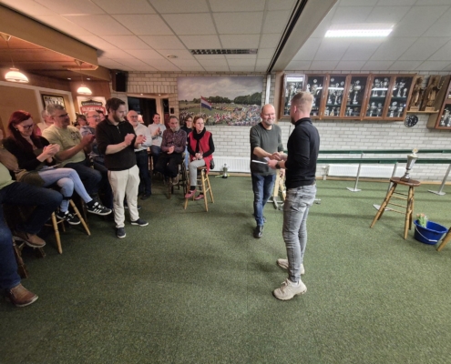 Nadat iedereen zijn of haar serie had geschoten kon op deze slotavond de eindstand worden bepaald en konden we de nieuwe clubkampioenen bekendmaken. De prijsuitreiking werd gedaan door onze nieuwe hoofdman Jordi van Kessel. De deelnemers hebben tijdens de tien schietavonden in totaal 138 meegetelde series geschoten (83 niet opgelegd en 55 opgelegd) en dat was 14 series meer dan vorig jaar. Samen kwamen alle schutters dit jaar tot een aantal van 2.760 meegetelde schoten (exclusief proefschoten). Van de 83 niet opgelegd series schoot Veronique Rijnen op 10-11-2025 de hoogste individuele score, van maar liefst 193 (7x een 9, 8x een 10 en 5x een 10+ (de hoogst mogelijke score)). Opgelegd schoten zowel Gonnie Geraads als Rinus Thijssen de hoogst mogelijke individuele score van 200 over 20 schoten. Gonnie schoot hierbij maar liefst 16x een 10+ op de tweede schietavond (24-11-2025).