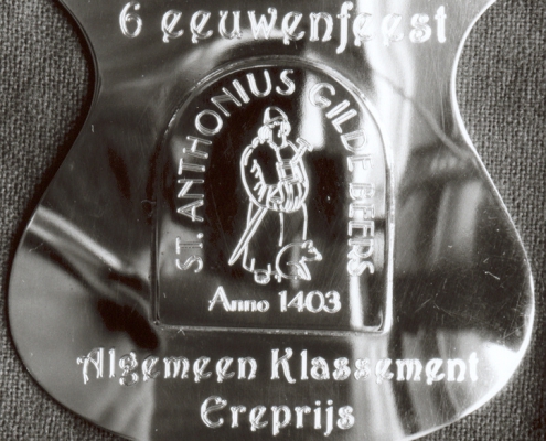 Maar toch was er op het eind van de dag nog een daverende verrassing. We sleepten als gilde de ereprijs in de wacht voor de totale presentatie en deelname aan de wedstrijden. Dit hadden we echt niet verwacht en dit was jaren geleden dat ons deze eer ten beurt viel. We beschouwen het als een compliment voor het vele werk wat we met zijn allen in ons gilde stoppen en zien het als een enorme stimulans om zo door te gaan. Gezamenlijk haalden we de prijs af en we hebben er nog een mooi feest van gemaakt met zijn allen. Zo trots als een pauw en zeer tevreden vetrokken we weer naar Groeningen. Deze gildedag zullen we niet zo snel meer vergeten.